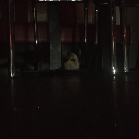 Cowering and hiding behind or on top of furniture